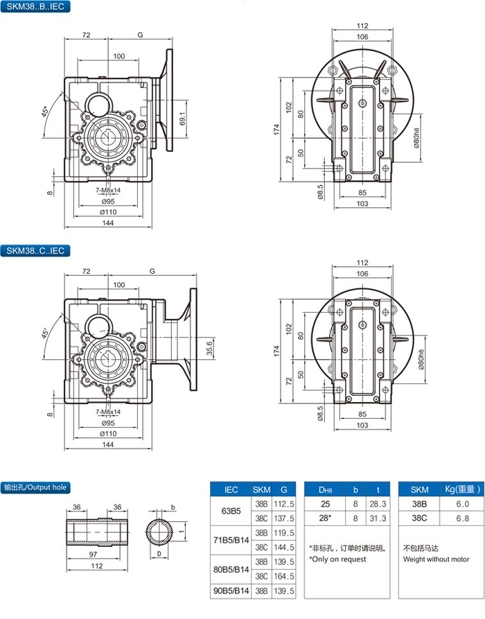 SKM28B-58B(IEC)斜齒-準(zhǔn)雙曲面齒輪減速機