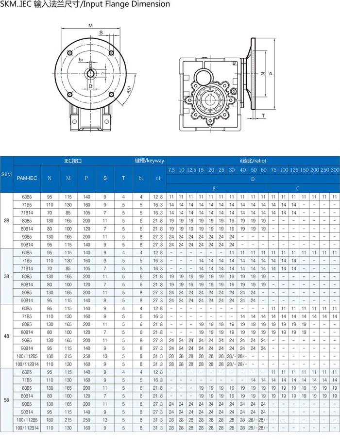 SKM28B-58C(IEC)斜齒-準(zhǔn)雙曲面齒輪減速機(jī)